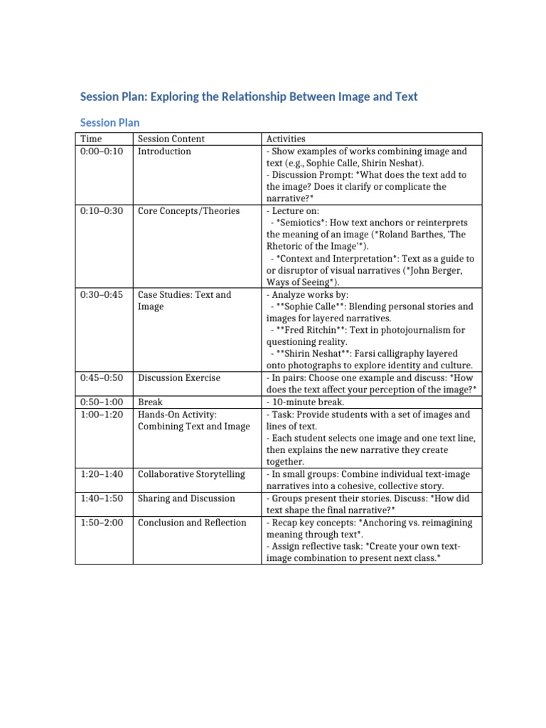Session Plan Image Text Relationship | PDF | Narrative | Image