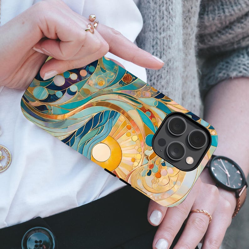 Stained Glass Sunrise Ocean Wave Print Phone Case,modern Magical Art ...