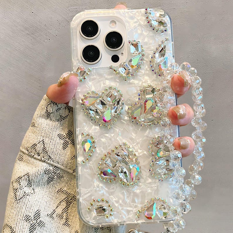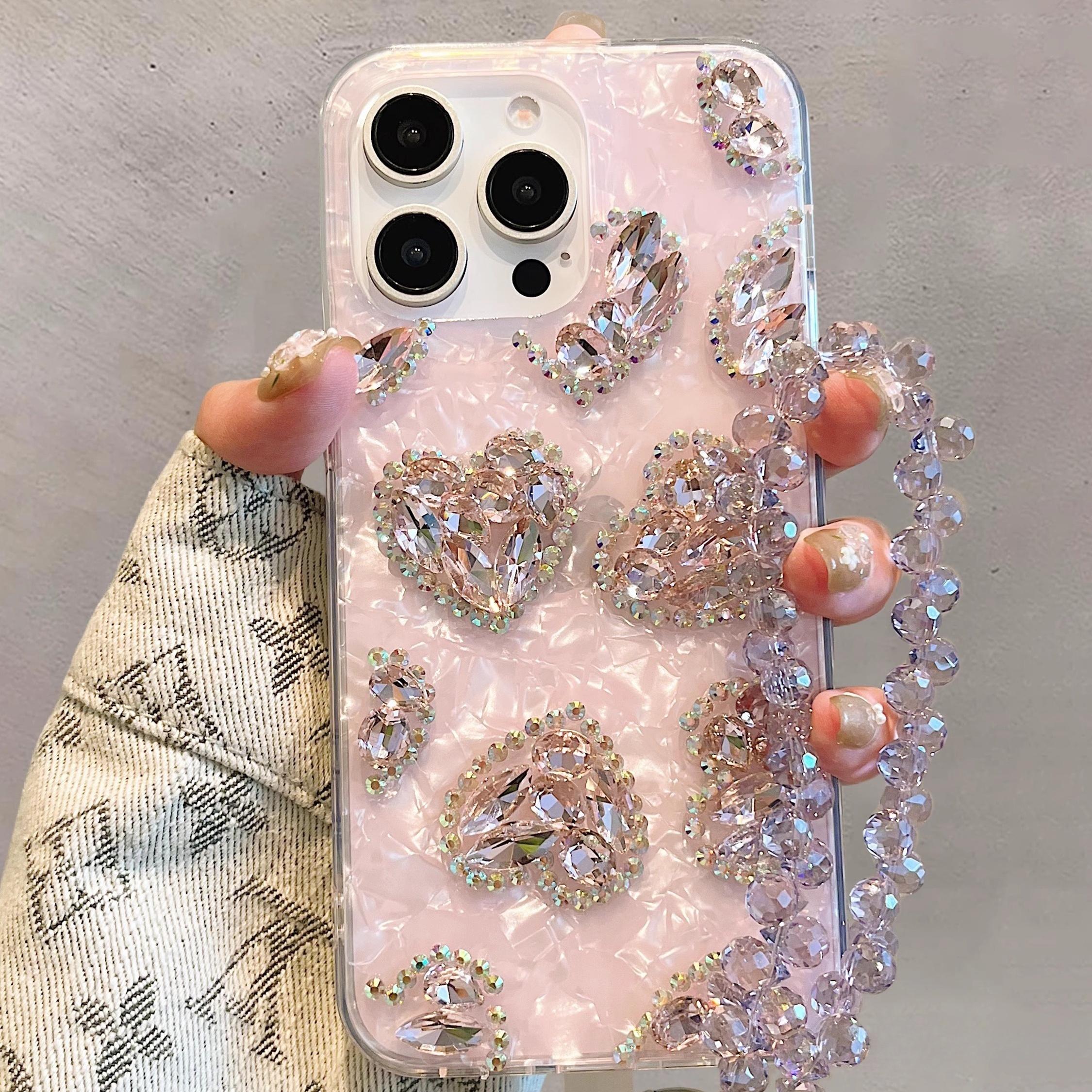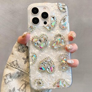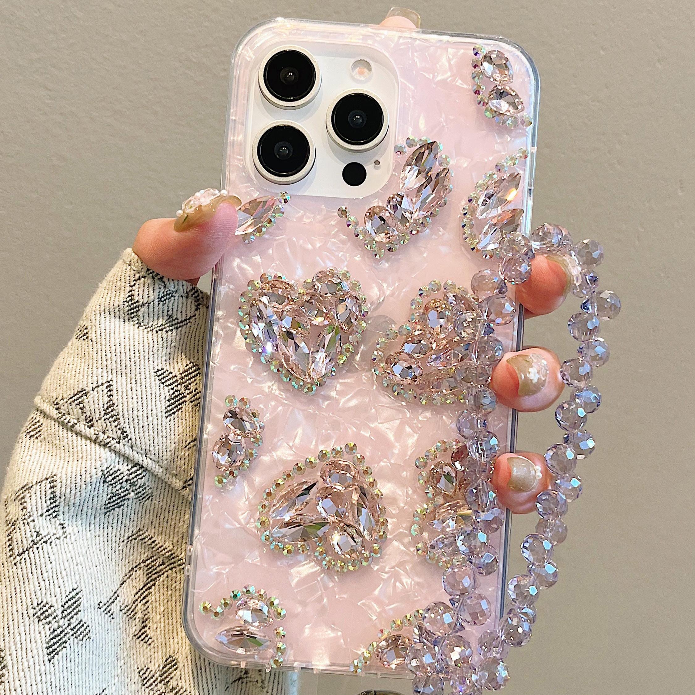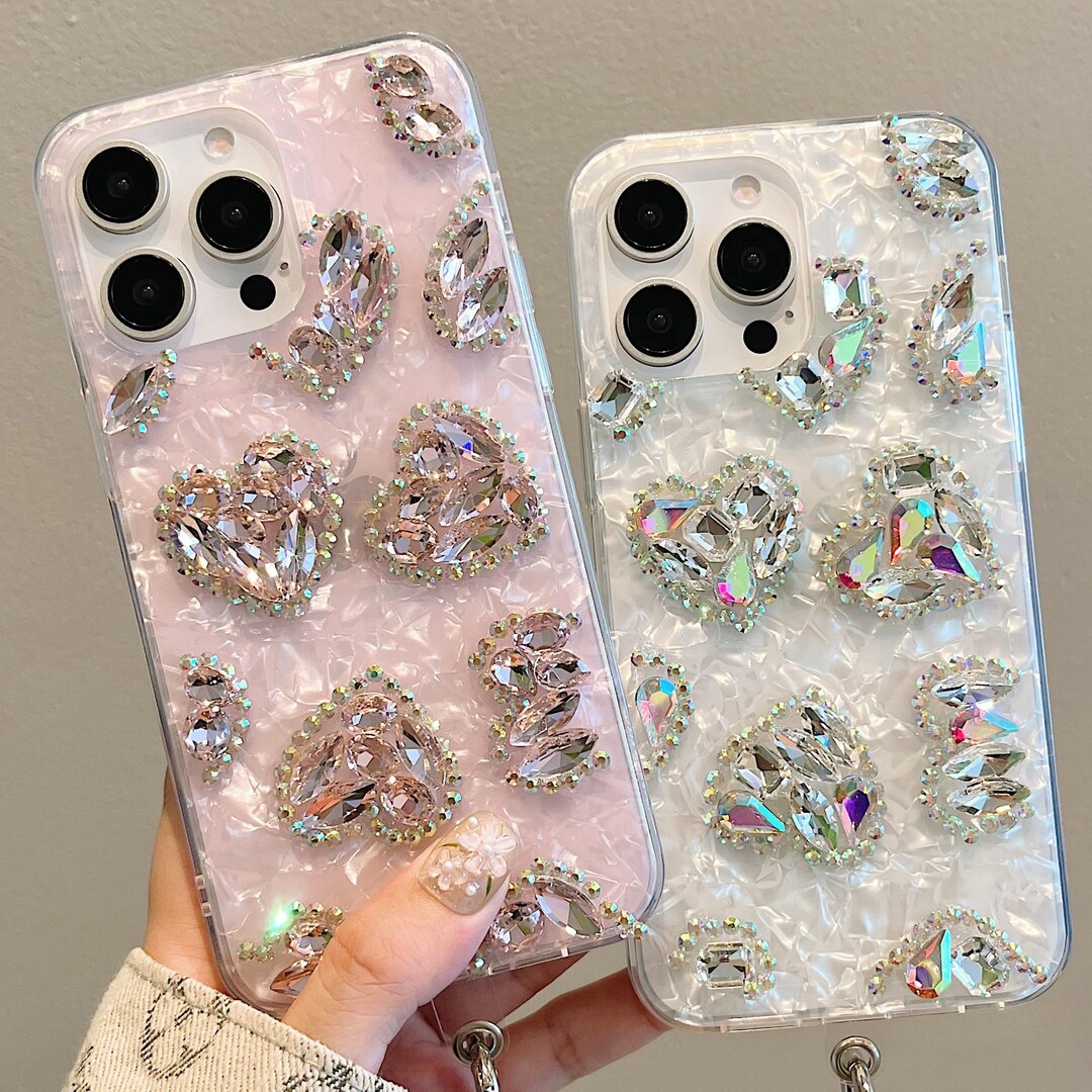 Shell Pattern With Bling Crystal Heart for iPhone 12 13 14 15 Pro Max ...