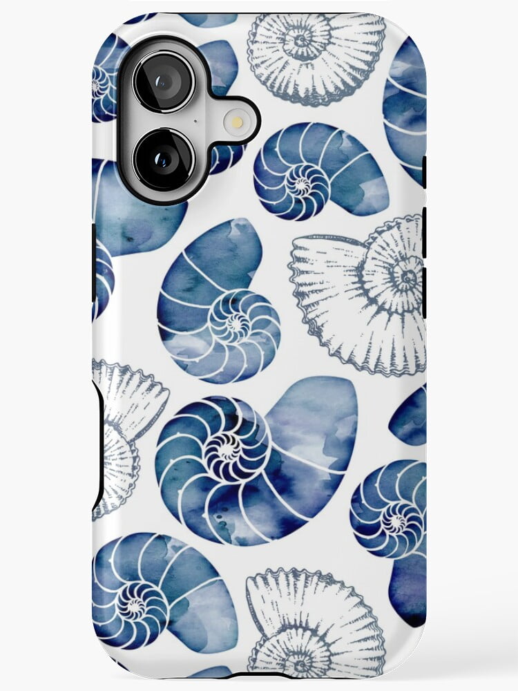 Seashell Phone Case, Blue and White Seashell Pattern, iPhone 15, 14, 13 ...