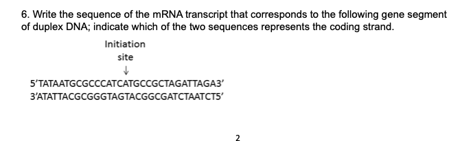 Solved 6. Write the sequence of the mRNA transcript that | Chegg.com