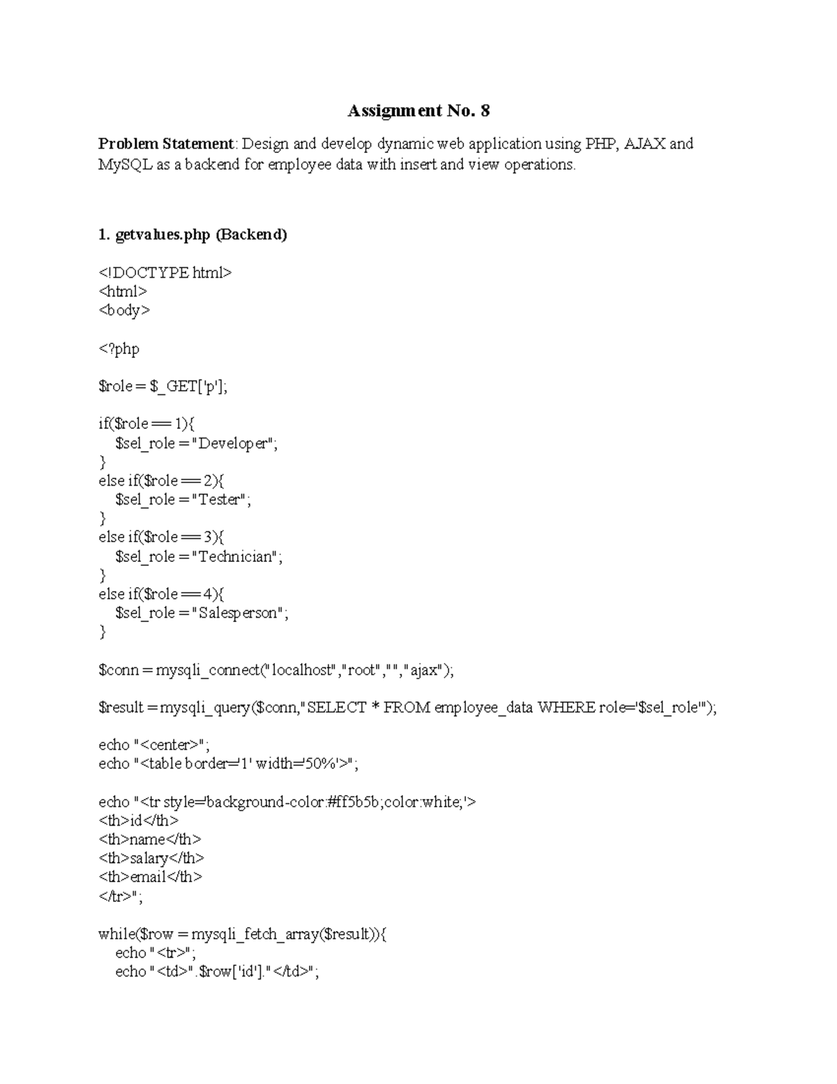 Assignment No. 8: Dynamic Web App Dev with PHP, AJAX & MySQL - Studocu