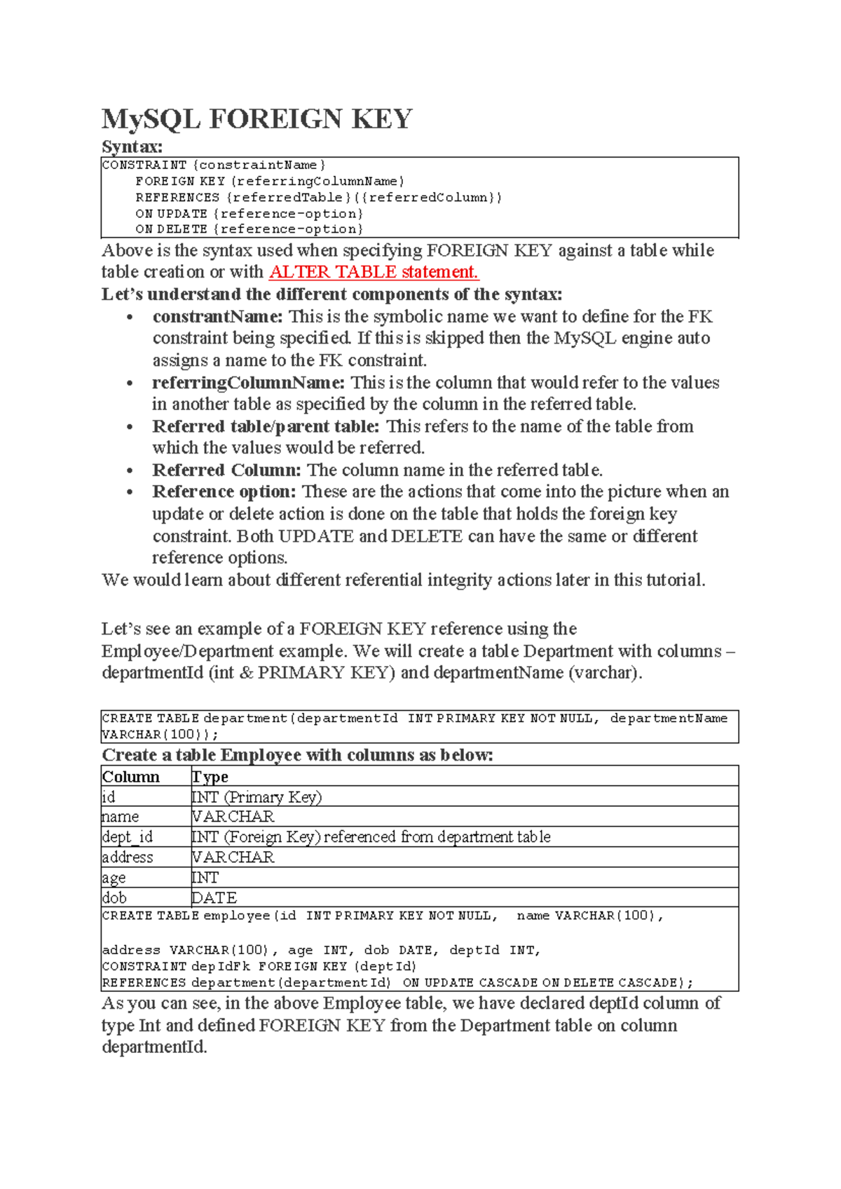 MySQL Foreign Key Constraints: Syntax and Referential Integrity - Studocu