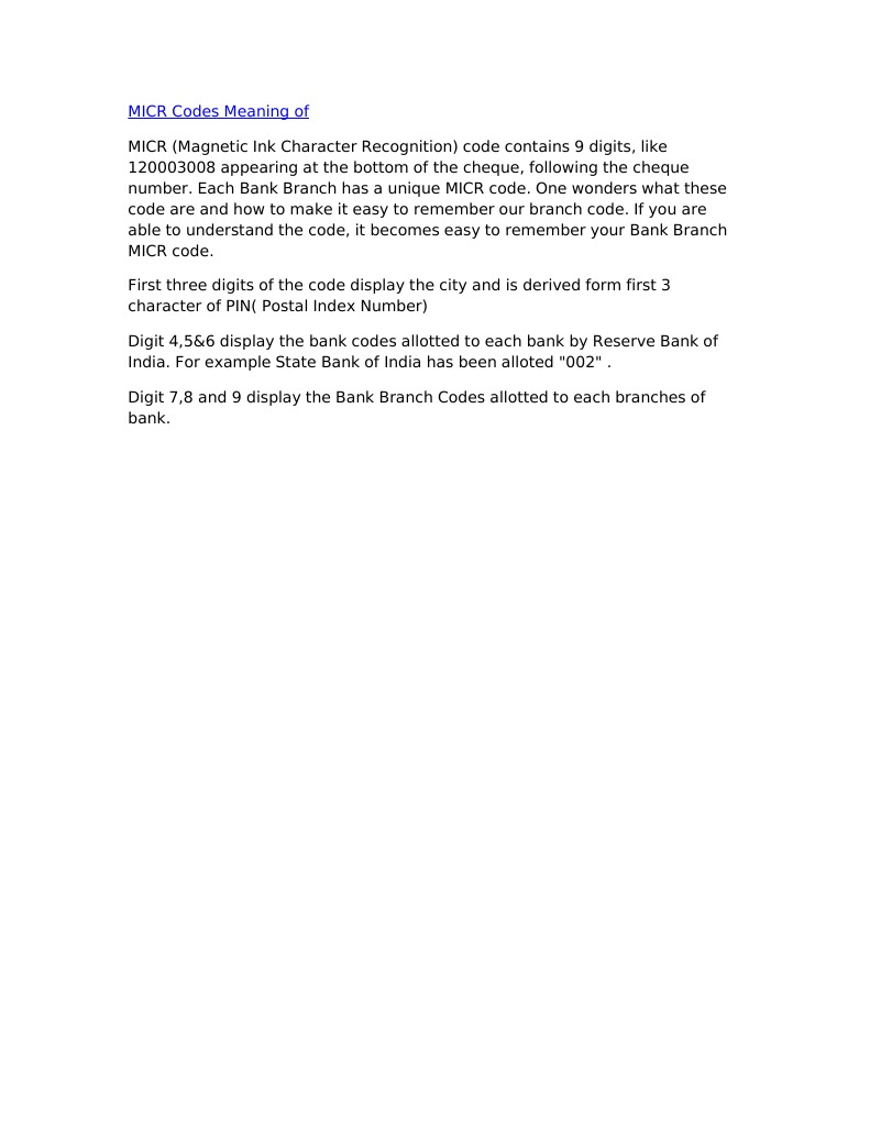 what is Bank MICR Code and what is its use?