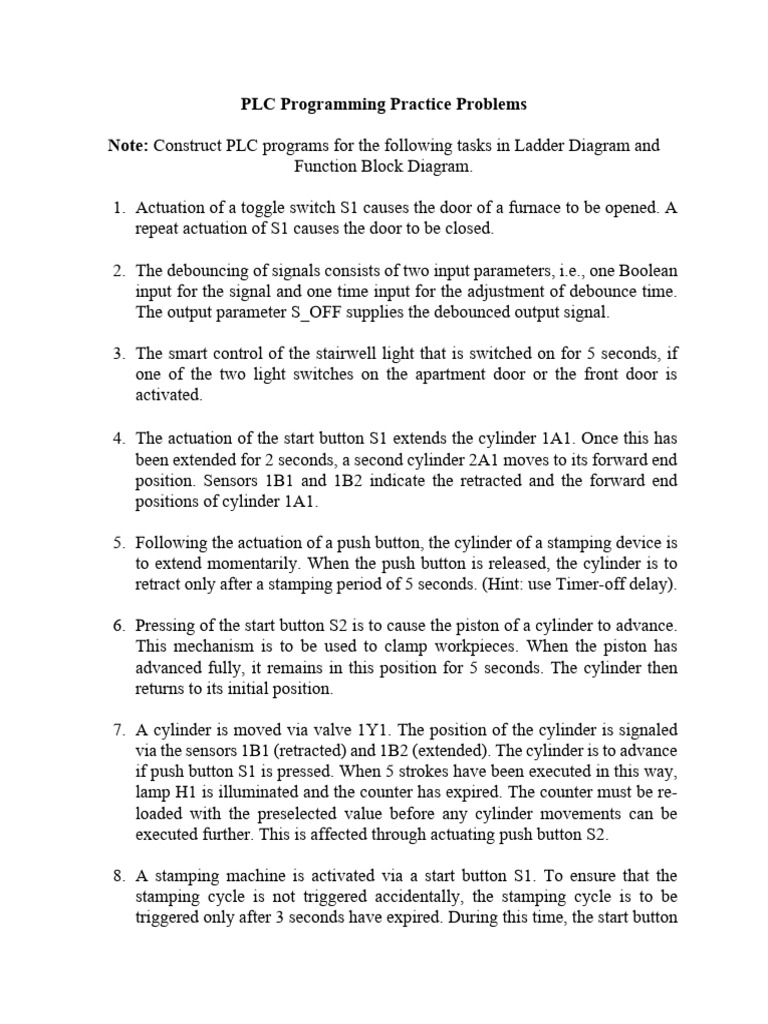 PLC Programming Practice Problems: Solutions and Insights | Course Hero