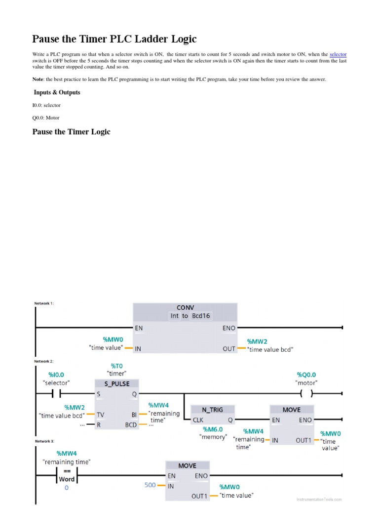 Pause Timer Logic for PLC Control | PDF | Technology & Engineering
