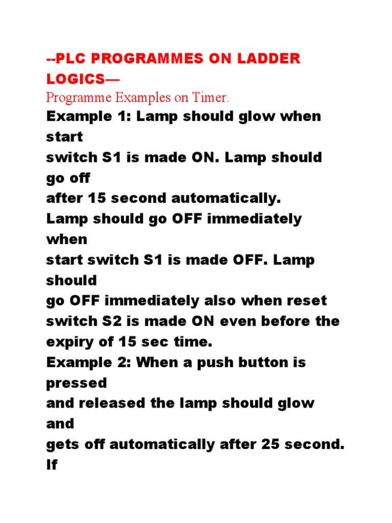 PLC Programmes On Ladder Logics - Programme Examples On Timer | PDF ...