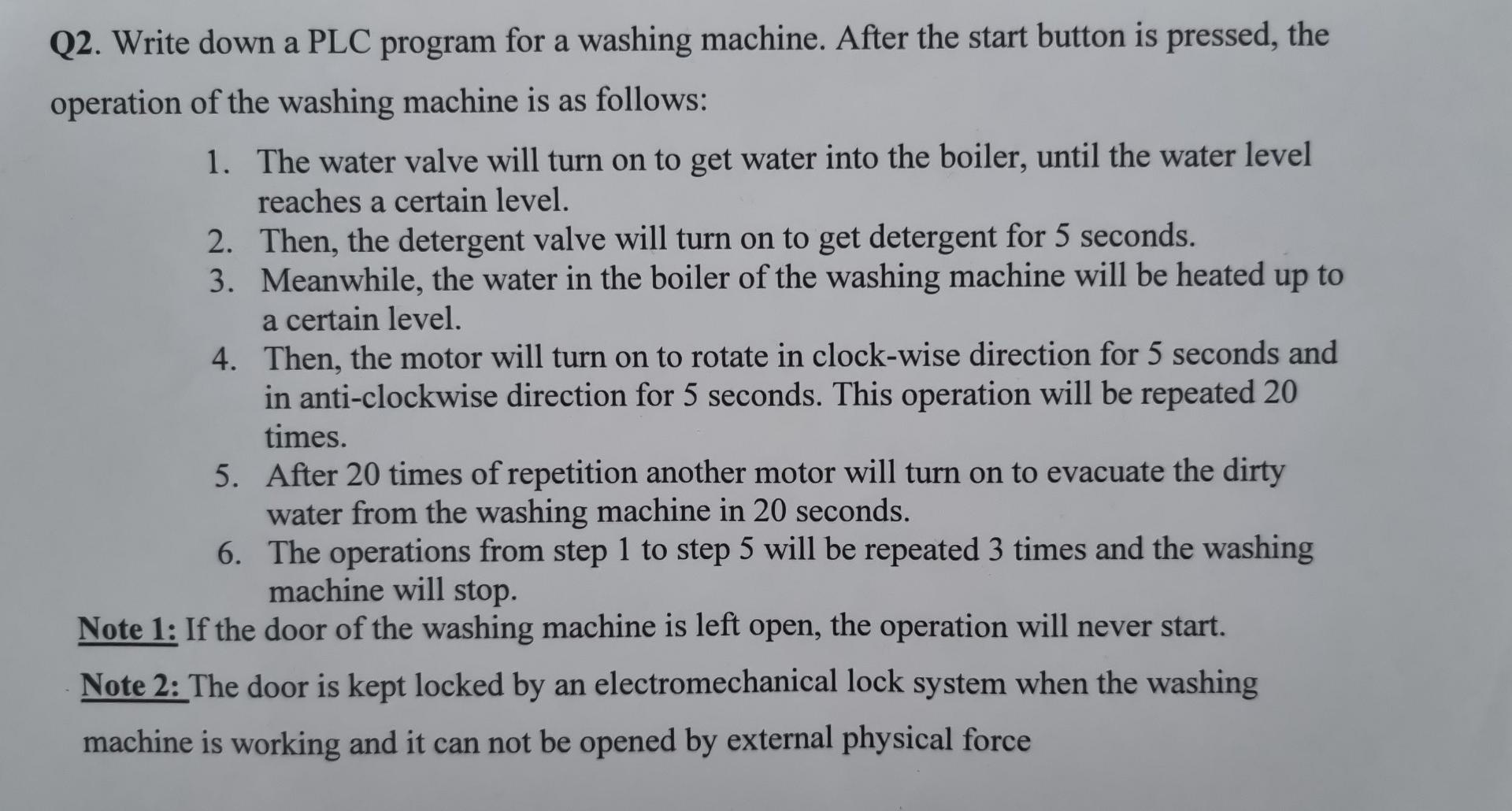 Solved Q2. Write down a PLC program for a washing machine. | Chegg.com